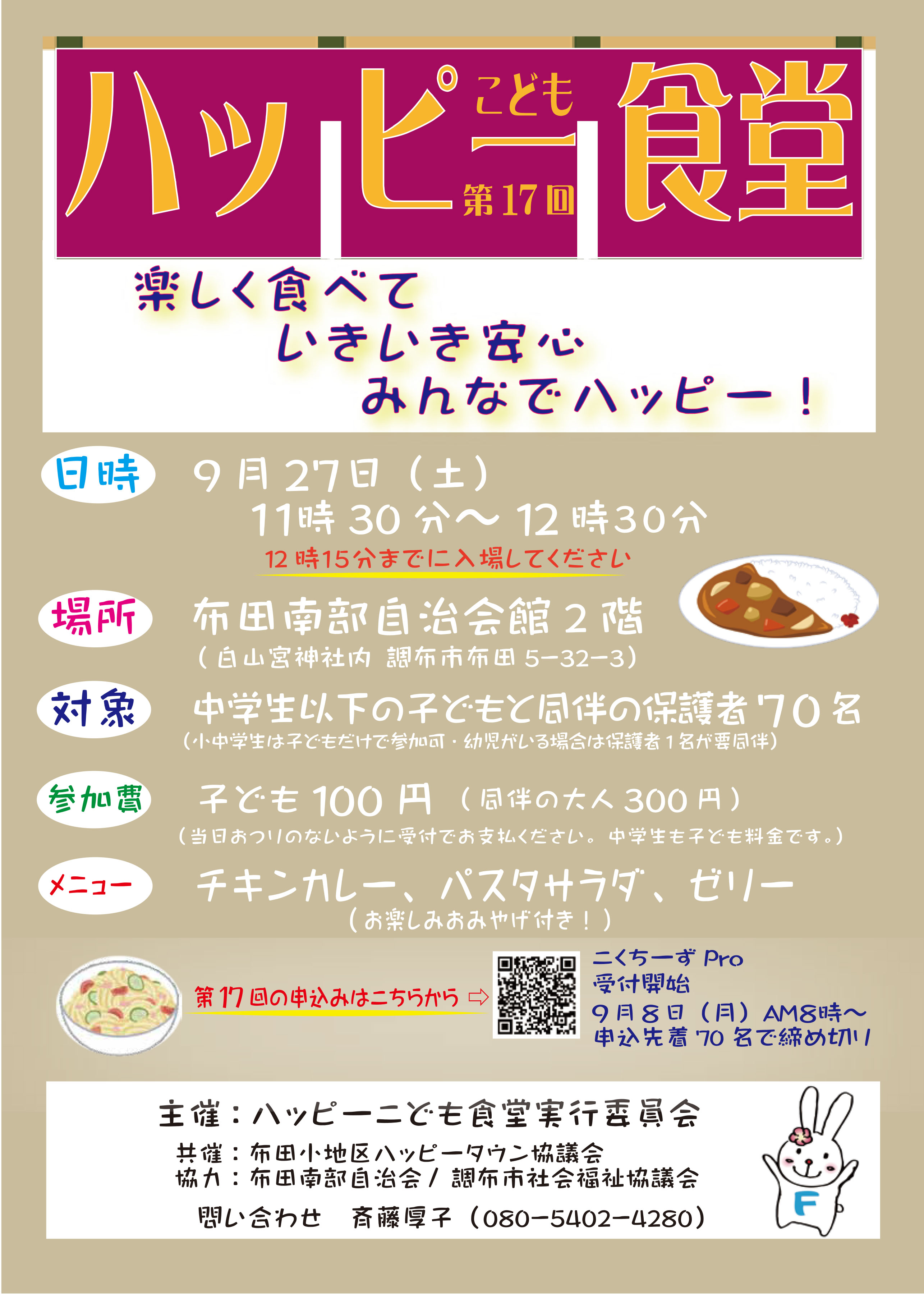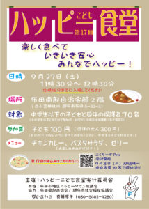 第17回ハッピー子ども食堂【2025年9月27日(土)11時半~12時半】