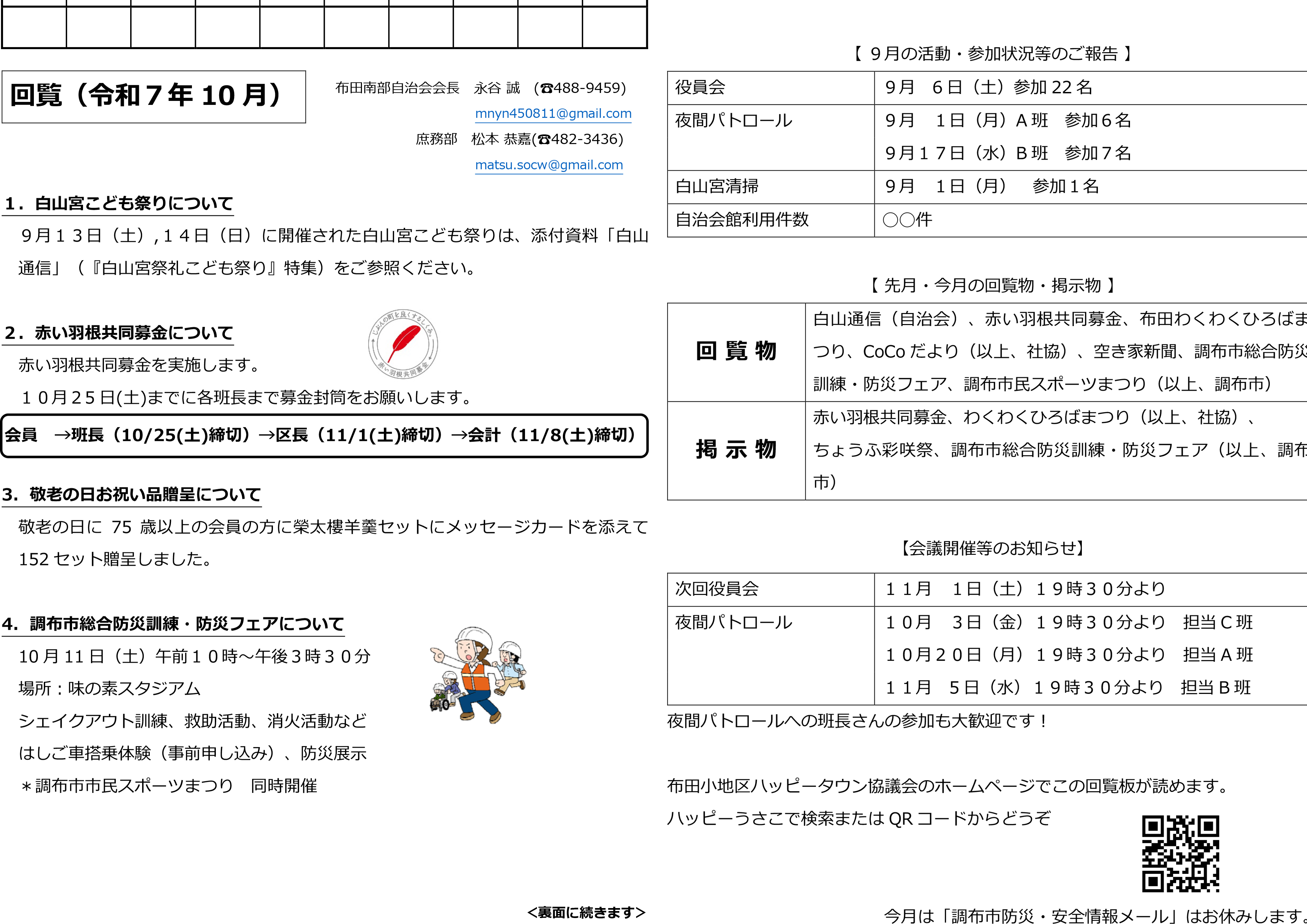 2025年10月1日 / 最終更新日 : 2025年10月17日 happyusako -布田南部自治会 回覧板 布田南部自治会 回覧板 【R7(2025)年 10月版】 南部自治会回覧板 2025年10月号PDF版 ⇨ 202510回覧板