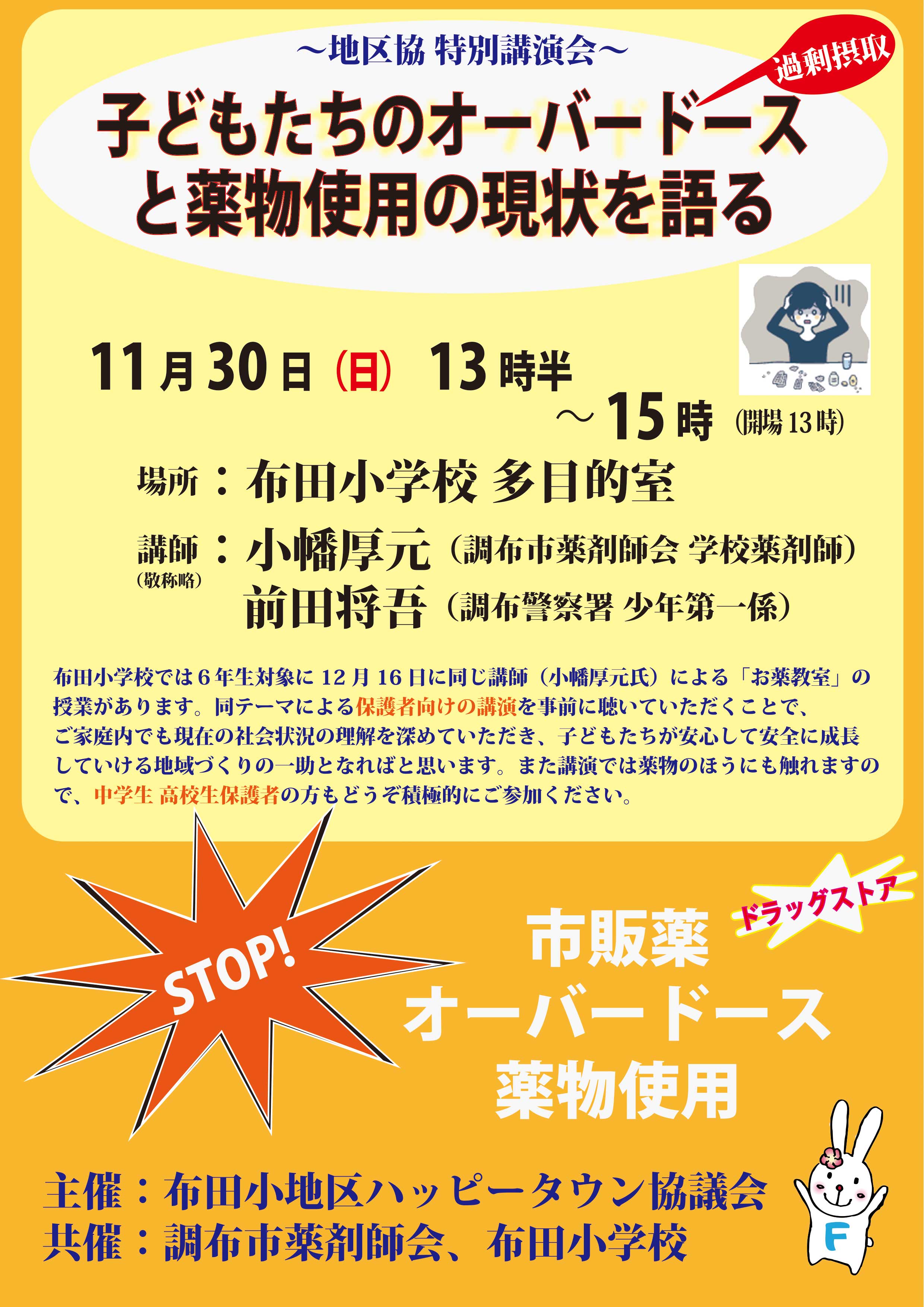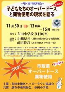 地区協特別講演会 【11月30日(日)子どもたちのオーバードーズと薬物使用の現状を語る 布田小多目的室 13時半~】