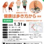 2026年1月15日 / 最終更新日 : 2026年1月15日 happyusako ▽調布市社会福祉協議会 「健康は歩き方から講座」【1月31日(土)10時~11時半 そんぽの家S国領】 調布市内で歩き方教室を主宰している馬渕氏をお招きして、歩き方について実践形式で学ぶ講座を企画しました。 いつまでも自分の足で歩くヒント満載です。会場は、国領6丁目にあるサービス付き高齢者住宅のそんぽの家S国領を借りていま […]